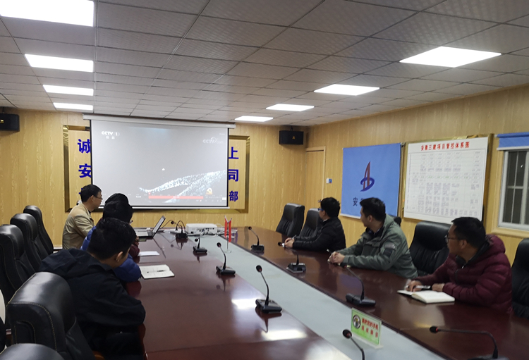 在六安第一中學擴建項目會議室,當天晚上參與項目建設的四公司、安裝公司、門窗公司聯(lián)合組織項目黨員及管理人員集中觀看專題片。次日一早,裝飾也組織六安一中項目參戰(zhàn)管理人員集中收看專題片,汲取榜樣力量。