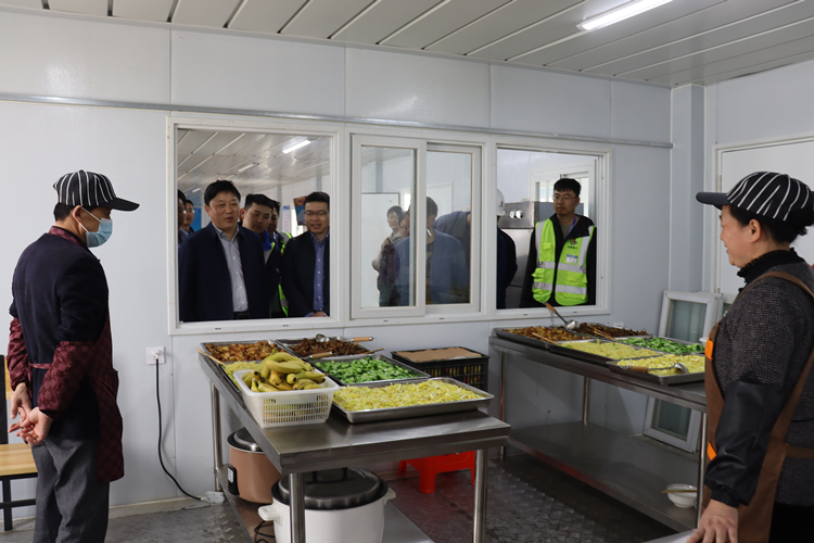 調(diào)研中,何洪春一行深入施工現(xiàn)場、員工宿舍和員工食堂,實地察看了施工進(jìn)度,與員工親切交談,了解員工工作及后勤保障情況。在施工現(xiàn)場何洪春要求,一定要關(guān)愛一線員工的生活,努力創(chuàng)造好的生活環(huán)境,做好后勤保障工作,為施工生產(chǎn)有效推進(jìn)奠定堅實的基礎(chǔ)保障。