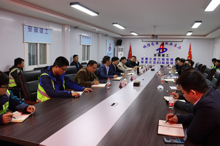 在認(rèn)真察看項目現(xiàn)場后,何洪春在項目部組織召開了座談會。會上,何洪春對項目取得階段性成果表示肯定,并對施工、安全生產(chǎn)及現(xiàn)場需要解決的重難點問題提出具體意見建議。就項目管理及雄安分公司近期工作,何洪春提出四點要求:一是各參建單位要統(tǒng)一戰(zhàn)線,統(tǒng)一“一盤棋”思想,要快動作、高標(biāo)準(zhǔn)、嚴(yán)要求,不打折扣推進(jìn)工作;二是各工區(qū)、各參戰(zhàn)人員要提高站位、主動作為、加強溝通、勇于承擔(dān)、發(fā)揚安徽建工“特別能吃苦、特別能戰(zhàn)斗”企業(yè)作風(fēng),克服困難,保障施工;三是項目管理要做好“五好措施”,暨計劃編制好、資源配置好、組織協(xié)調(diào)好、督促檢查好、服務(wù)保障好;四是雄安分公司要抓住機遇豎品牌、履約工程抓市場,繼往開來,共創(chuàng)輝煌。