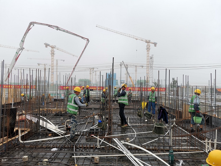 端午佳節(jié),時(shí)值盛夏,過(guò)節(jié)不停產(chǎn),堅(jiān)守第一線(xiàn),這是雄安容西安置房B3標(biāo)段項(xiàng)目端午節(jié)當(dāng)天施工現(xiàn)場(chǎng)的真實(shí)寫(xiě)照。雖然是端午小長(zhǎng)假,但工地上所有工作都在有序進(jìn)行,項(xiàng)目部全體管理人員正常打卡上班,1916名工人一如往常早早來(lái)到工地,為確保6月底全部出正負(fù)零的節(jié)點(diǎn)任務(wù),現(xiàn)場(chǎng)30多臺(tái)塔吊、16臺(tái)吊車(chē)、11臺(tái)叉車(chē)、5臺(tái)汽車(chē)吊全部開(kāi)足馬力,正常運(yùn)行。測(cè)量放線(xiàn)、鋼筋綁扎、拆模、搭設(shè)內(nèi)架、墻柱鋼筋綁扎、鋪設(shè)頂板、混凝土澆筑等工作面交叉作業(yè),秩序井然。全體參建人員頂著高溫,與時(shí)間賽跑,把團(tuán)圓拋在腦后,把目標(biāo)擺在眼前,共計(jì)完成混凝土澆筑6096方,鋼筋使用720噸。