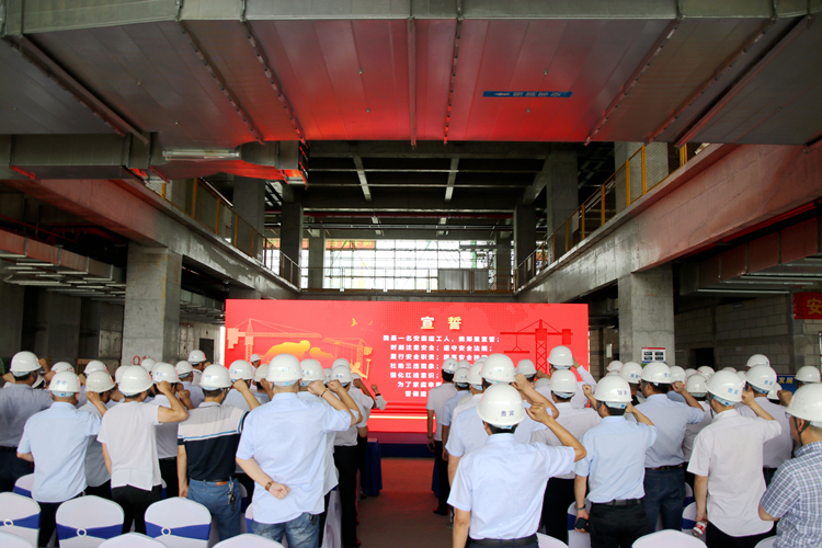 安全生產(chǎn)管理部有關(guān)負(fù)責(zé)人帶領(lǐng)全體與會(huì)人員莊嚴(yán)宣誓并在安全承諾區(qū)鄭重簽名。隨后,圖書館項(xiàng)目管理人員組織開展了施工現(xiàn)場(chǎng)高處墜落事故救援演練,演練人員模擬了事故的發(fā)現(xiàn)與報(bào)告、指揮與協(xié)調(diào)、現(xiàn)場(chǎng)搶險(xiǎn)救援與疏散等過程。