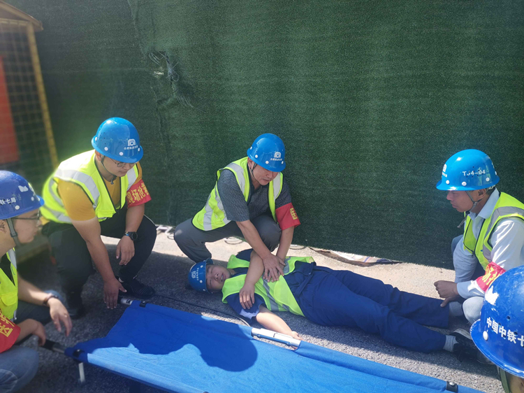 6月21日上午,六公司合肥軌道交通4號線4標(biāo)25名管理人員在該項目呈坎路站舉行觸電演練活動,中鐵七局合肥軌道交通4號線4標(biāo)項目人員及項目監(jiān)理參與。