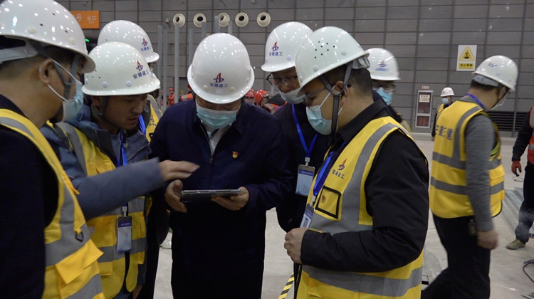 為了爭取時間,三建提前做好了人員、物資的準(zhǔn)備工作,圖紙還未下達(dá),安徽三建已經(jīng)調(diào)集近200多名本地工人,落實(shí)核酸檢測和查驗(yàn)雙碼,為進(jìn)場施工做好準(zhǔn)備工作。拿到圖紙后4個小時,項(xiàng)目部就制定了交叉作業(yè)的科學(xué)施工方案,同時下達(dá)了精確到小時的施工進(jìn)度計(jì)劃。裝飾、安裝、土建立即投入施工。制定解決方案。辦法總比困難多。在施工過程中發(fā)現(xiàn)任何問題,項(xiàng)目部立即現(xiàn)場解決?,F(xiàn)場停水48小時,項(xiàng)目就調(diào)用消防水車、購買飲用水,千方百計(jì)保證項(xiàng)目不停工。三建參戰(zhàn)的裝飾、安裝、土建團(tuán)隊(duì)緊密配合,形成合力,確保了各項(xiàng)工作高速推進(jìn)。