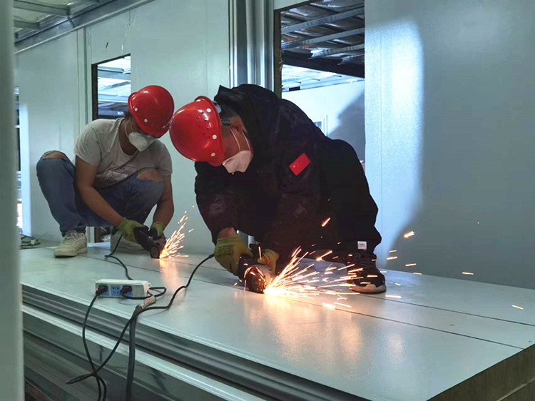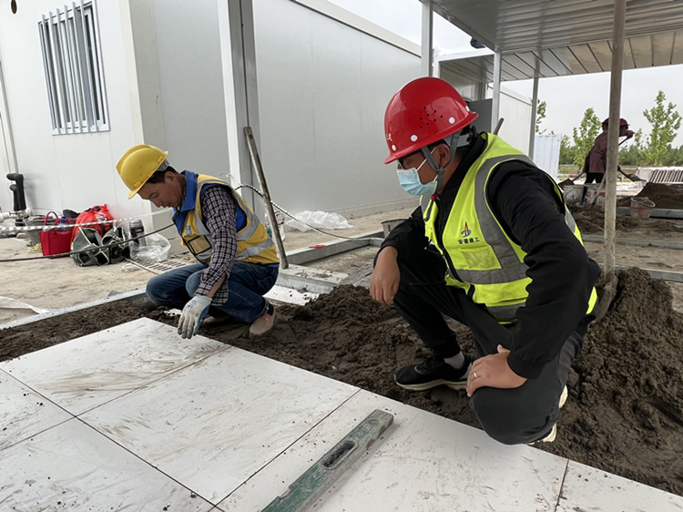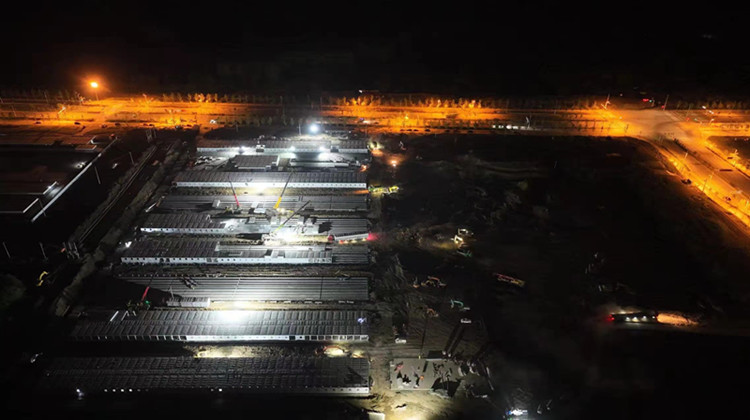 以“區(qū)域管理”為主線,采取“分區(qū)作戰(zhàn),分段推進(jìn)”模式嚴(yán)格執(zhí)行24小時(shí)輪班制。20天建設(shè)周期,1/3天的陰雨綿綿,被汗水、雨水浸透衣服的工人們從未停下他們熟練且機(jī)械性的操作,一遍遍地?cái)Q動(dòng)扳手,一次次地扣動(dòng)電動(dòng)螺絲刀,有的焊接、有的切割、有的吊裝、有的砌磚、有的穿線,不同工種都用他們行云流水般的“工匠”之力完成項(xiàng)目的建設(shè)工作。