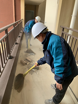 共有2名黨員,20多名團員參加此次義務勞動。在黨員同志的模范帶頭下,大家深入三期工程現(xiàn)場,圍繞工程竣工收尾階段對高層25#、26#、27#樓進行衛(wèi)生清理,主要清掃每層樓的公共區(qū)域及連廊部分。雖然天氣寒冷,但是大家熱情高漲、干勁十足。大家分工合作,由上至下,不放過每一個角落的垃圾。在3個多小時的共同努力下,大家共完成了102層樓的衛(wèi)生清理工作。