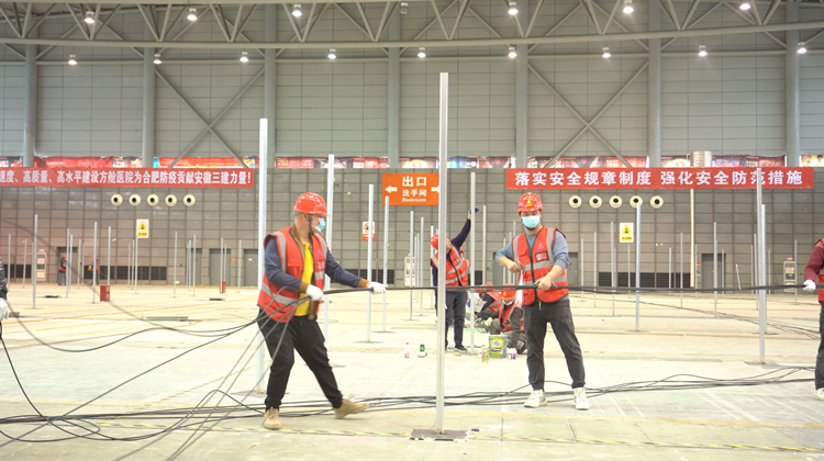 安徽三建黨委書記、董事長何洪春連夜立即召開動員會,要求高速度、高質量、高標準完成方艙醫(yī)院建設任務!公司組織精兵強將,調集60多名管理人員和近700名工人迅速投入現(xiàn)場施工。公司安排副總經(jīng)理樊剛駐點一線指揮協(xié)調。項目部調動一切力量,克服一切困難,發(fā)揮產(chǎn)業(yè)鏈和資源優(yōu)勢,24小時搶工期保進度。