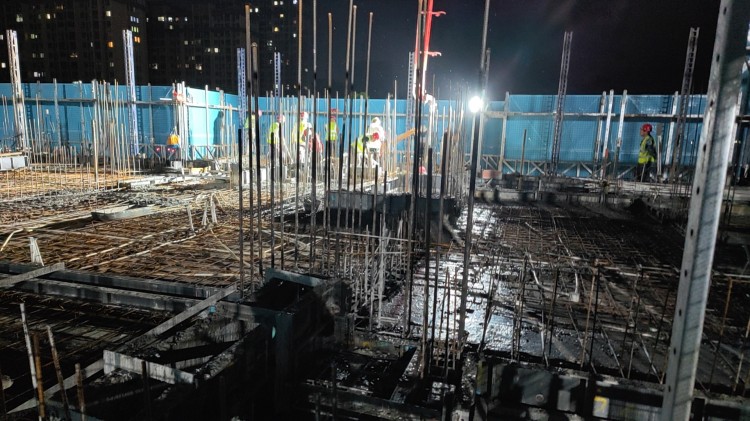 在高新區(qū)時(shí)代星河二期項(xiàng)目建設(shè)現(xiàn)場(chǎng),運(yùn)輸車(chē)輛穿梭不止,各類(lèi)機(jī)器運(yùn)轉(zhuǎn)不停,施工人員堅(jiān)守崗位有序作業(yè),大家鼓足干勁、輪班作業(yè)、晝夜搶工,鋼筋綁扎、澆筑混凝土……廣大三建人用辛勤的勞動(dòng)為節(jié)日增添了一抹亮麗的色彩,推進(jìn)項(xiàng)目進(jìn)度加速向前?!霸擁?xiàng)目是安徽三建觀(guān)摩工程項(xiàng)目,分為一期和二期,我們現(xiàn)在建設(shè)的是二期工程,該工程項(xiàng)目現(xiàn)處在前期施工階段,目前項(xiàng)目地庫(kù)已全部封閉,正在施工正負(fù)零以上主體結(jié)構(gòu)部分。項(xiàng)目以“起步就是沖刺”的大干姿態(tài),做好‘五一’期間項(xiàng)目不停工不停產(chǎn),現(xiàn)在每天現(xiàn)場(chǎng)施工的工程機(jī)械達(dá)20臺(tái),有將近450人加班加點(diǎn)作業(yè)中,確保2025年6月初全面竣工。”項(xiàng)目負(fù)責(zé)人沈飛說(shuō)。