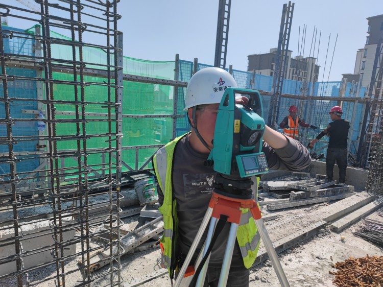 時(shí)代公館項(xiàng)目測(cè)量放線(xiàn)工常有路正在五號(hào)樓三層頂板測(cè)量放線(xiàn)