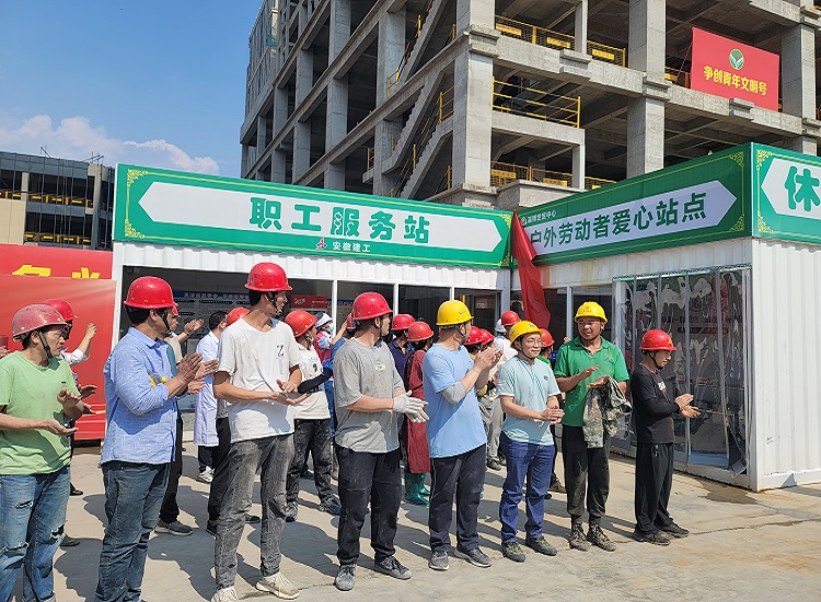 6月13日上午,淄博市總工會(huì)戶外勞動(dòng)者流動(dòng)愛(ài)心站點(diǎn)啟動(dòng)儀式在華東公司承建的明發(fā)世貿(mào)中心超高層項(xiàng)目部舉行,淄博市總工會(huì)黨組成員、市工會(huì)事業(yè)綜合服務(wù)中心主任陳倫東出席儀式并發(fā)表講話。