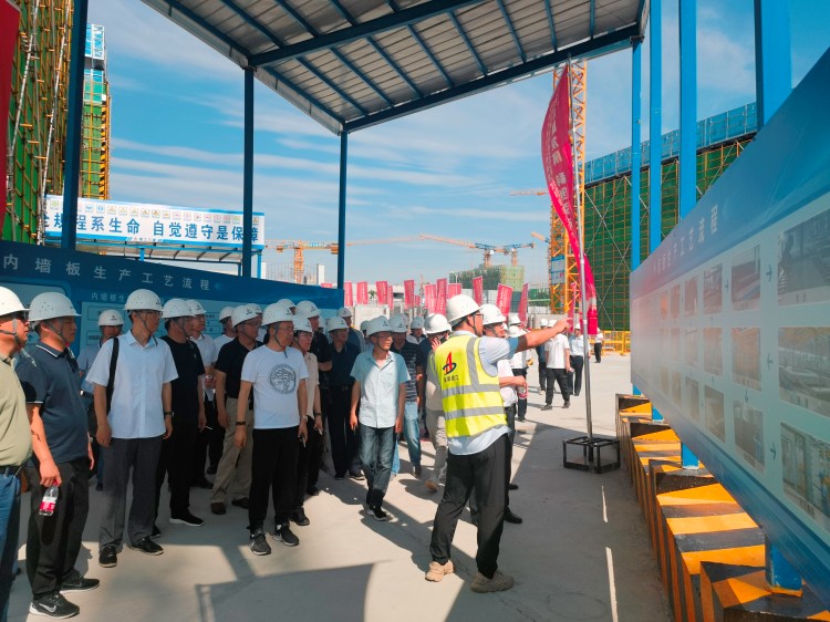 項目負責人沈飛首先對孫業(yè)飛一行的到來表示熱烈歡迎,就合肥市建筑工程協(xié)會對項目長期以來的關心與幫助表示感謝,帶領觀摩團一行參觀了安全文化主題長廊、安全體驗區(qū)、裝配式建筑實體樣板區(qū)、應急救援展示區(qū)等多個區(qū)域,觀摩團一行就施工用電精細化管理、可周轉定型化后澆帶蓋板、預制構件吊裝與灌漿工藝、連廊等特殊部位外掛架倒三角支撐施工工法等一系列創(chuàng)新創(chuàng)優(yōu)做法給予了贊賞和肯定,并就項目職工關于施工過程中存在的問題及疑惑一一耐心解答。