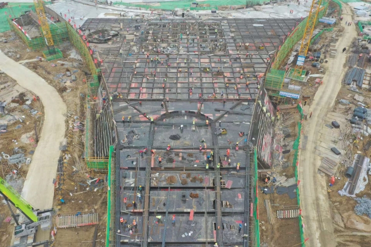 干出“快節(jié)奏”,跑出“加速度”。由于工期緊迫,項(xiàng)目部第一時(shí)間制定了周密的施工進(jìn)度計(jì)劃,明確任務(wù)分工,落實(shí)攻堅(jiān)舉措。成立“黨員先鋒隊(duì)”“青年突擊隊(duì)”,動(dòng)員一切力量,加大現(xiàn)場(chǎng)管理和施工投入。面對(duì)高溫、雨水、停電、協(xié)調(diào)單位多等各種難題,項(xiàng)目全體管理人員充分發(fā)揚(yáng)“特別能吃苦、特別能戰(zhàn)斗”的企業(yè)作風(fēng),采取“兩班倒”以及“晴天苦干、小雨大干、大雨巧干”的模式保證24小時(shí)不間斷施工。同時(shí)每日根據(jù)實(shí)際情況實(shí)時(shí)動(dòng)態(tài)調(diào)整任務(wù)目標(biāo),在高溫天氣為一線作業(yè)人員提供防暑降溫物品,遇到外部問題積極進(jìn)行溝通和協(xié)調(diào)。在全體參建人員的共同努力下,項(xiàng)目主體結(jié)構(gòu)于7月6日實(shí)現(xiàn)全面封頂,比原計(jì)劃提前4天完成。