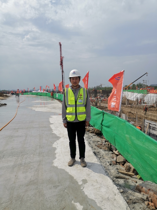 在公司承建的合肥園博園南入口項目,有這么一群人,他們頂著烈日,冒著風雨,夜以繼日,默默地堅守在工作崗位,喊啞的嗓音是他們的特征,被大家親切地稱呼為“喊啞嗓子團隊”。團隊里常常能看到一位身著反光背心、身材高瘦的年輕管理人員帶領一支以年輕人為主的職工隊伍忙碌在施工一線,他就是合肥園博園南入口項目的“90后”項目負責人—陳聞奇。