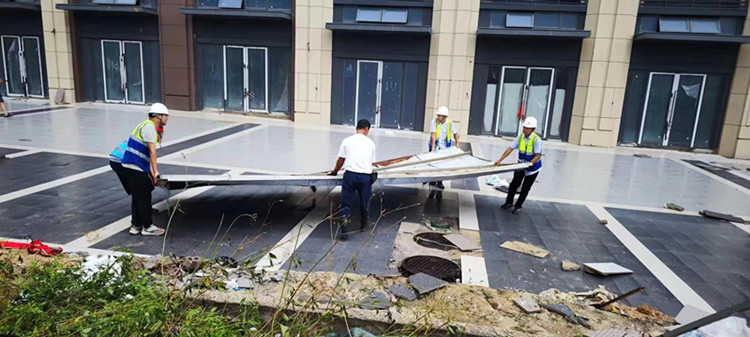 本次臺風(fēng)造成了項目積水嚴(yán)重、場地道路受損、現(xiàn)場圍墻倒塌等嚴(yán)重問題,為排除各類安全生產(chǎn)隱患,保障職工群眾生命財產(chǎn)安全,7月30日,項目全體管理人員迅速行動,搶修受臺風(fēng)暴雨損毀的道路、臨電設(shè)施、圍擋等,并加強(qiáng)災(zāi)后環(huán)境消殺、道路清障、積水清理等,全力開展災(zāi)后恢復(fù)工作。
