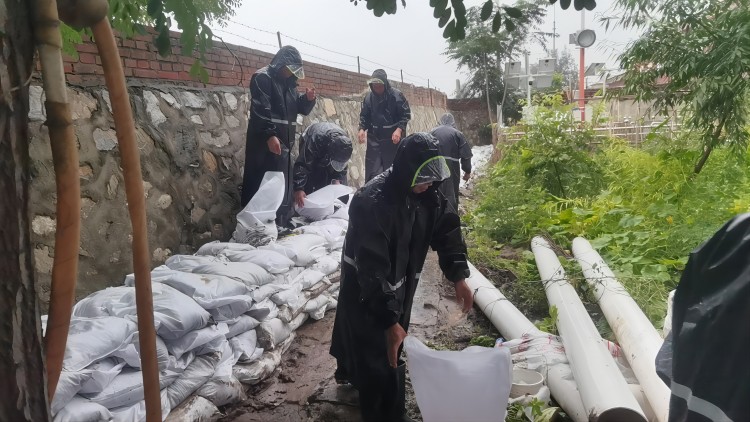 抗洪搶險小組先后在張青口、洪城小學(xué)、龍灣鄉(xiāng)洪城村、陳家柳楊水機站、雙堂鄉(xiāng)等地點參與抗洪搶險行動。在抗洪現(xiàn)場,小組人員個個奮勇爭先,站在泥濘的堤坡上裝運沙袋,加固加高風(fēng)險點堤埂,守護村民通行的道路,減少村民的損失,全力以赴保衛(wèi)村民的家園。