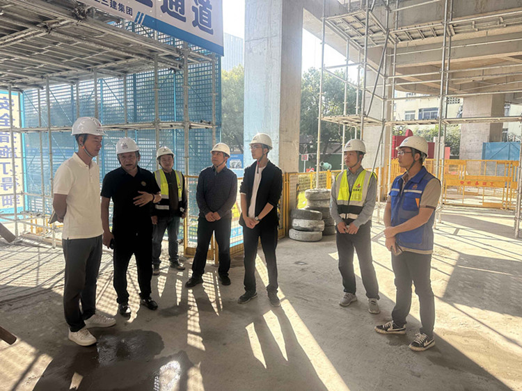 唐詩一行深入施工現(xiàn)場,實地查看項目建設進展、安全生產(chǎn)情況,認真聽取項目近期工作匯報,對項目過程質量、進度、安全管控予以肯定,并對項目工作提出要求:一是抓好現(xiàn)場安全生產(chǎn),增強施工人員安全意識,排查整改現(xiàn)場安全隱患,保證安全施工;二是對施工現(xiàn)場持續(xù)進行質量管控,嚴格把關結構質量,爭創(chuàng)優(yōu)質工程;三是要提前謀劃好后期的精裝修工程,做好前期準備工作,確?,F(xiàn)場施工持續(xù)順利進行。
