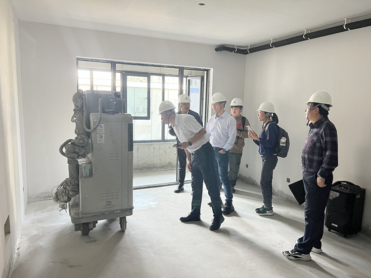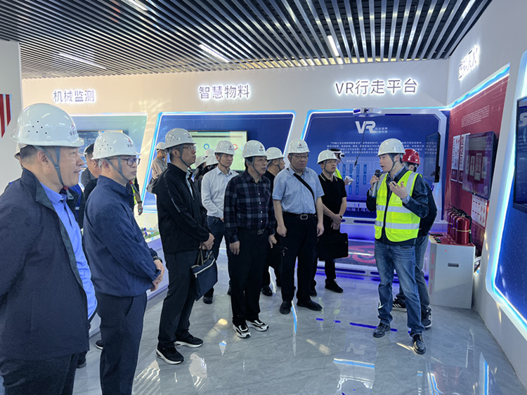 調(diào)研組一行實(shí)地查看了項(xiàng)目建設(shè)和智慧工地應(yīng)用情況,聽取了項(xiàng)目負(fù)責(zé)人關(guān)于工程概況、裝配式建筑、智慧展廳等相關(guān)情況的匯報(bào),重點(diǎn)查看了項(xiàng)目安全VR體驗(yàn)館和BIM+智慧工地?cái)?shù)字中心。隨后,大家還參觀了自動(dòng)噴涂機(jī)器人現(xiàn)場(chǎng)施工技術(shù)。
