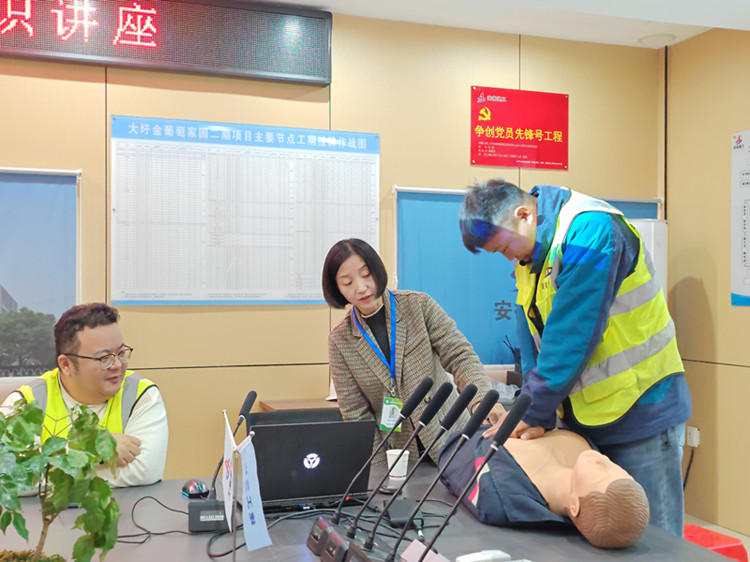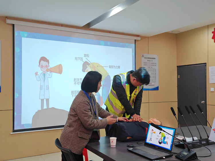 培訓(xùn)內(nèi)容主要包括常規(guī)急救技能(心肺復(fù)蘇術(shù))和常見疾病的預(yù)防及改善。課堂上,老師為大家科普了需要進(jìn)行心肺復(fù)蘇的情形、心肺復(fù)蘇具體操作步驟及心肺復(fù)蘇的有效判斷標(biāo)準(zhǔn),并現(xiàn)場邀請項目管理人員進(jìn)行了實(shí)操演練。