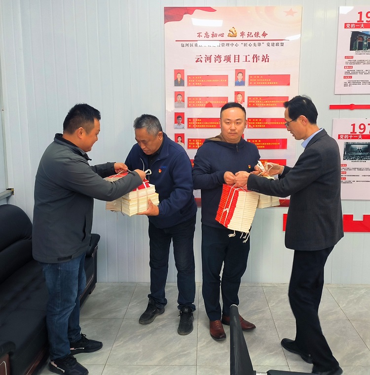 在黨員活動室,闞言衛(wèi)代表包河區(qū)重點局向工作站捐贈了一批黨建、業(yè)務(wù)和法律法規(guī)等方面書籍,并號召項目黨員、職工多讀書、勤學(xué)習(xí),不斷提升政治素養(yǎng)和崗位技能。