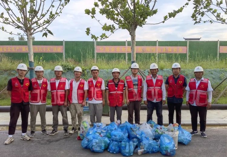 2023年7月,公司承建的合肥園博園南入口項(xiàng)目黨員及班子帶領(lǐng)團(tuán)員青年發(fā)揚(yáng)奉獻(xiàn)精神,利用每日工作間隙清理園區(qū)內(nèi)散落的垃圾,并進(jìn)行分類處理。此次活動(dòng)的開展,不僅增強(qiáng)了大家的奉獻(xiàn)意識(shí)和社會(huì)責(zé)任感,也有助于項(xiàng)目保持“工完料凈場(chǎng)地清”的良好工作習(xí)慣。