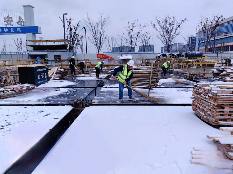 又看!在蜀山經(jīng)濟(jì)產(chǎn)業(yè)園安裝項(xiàng)目施工現(xiàn)場(chǎng),雖然寒風(fēng)凜冽、漫天飛雪,但項(xiàng)目依然保持火熱的建設(shè)狀態(tài)。為保障項(xiàng)目施工進(jìn)度和現(xiàn)場(chǎng)施工安全,全體管理人員都參與到清掃施工板面的積雪當(dāng)中。他們堅(jiān)守崗位、默默奉獻(xiàn),全力確保各項(xiàng)工程節(jié)點(diǎn)的順利完成。目前,蜀山經(jīng)濟(jì)產(chǎn)業(yè)園安裝項(xiàng)目地下室負(fù)二層已全面完工,一、二號(hào)樓負(fù)一層和三號(hào)樓一層預(yù)埋也已經(jīng)全部結(jié)束。