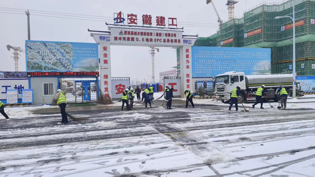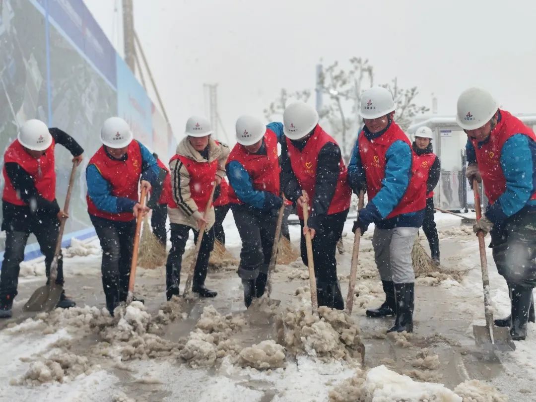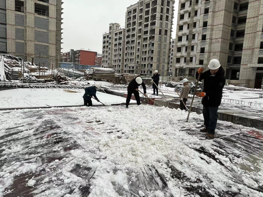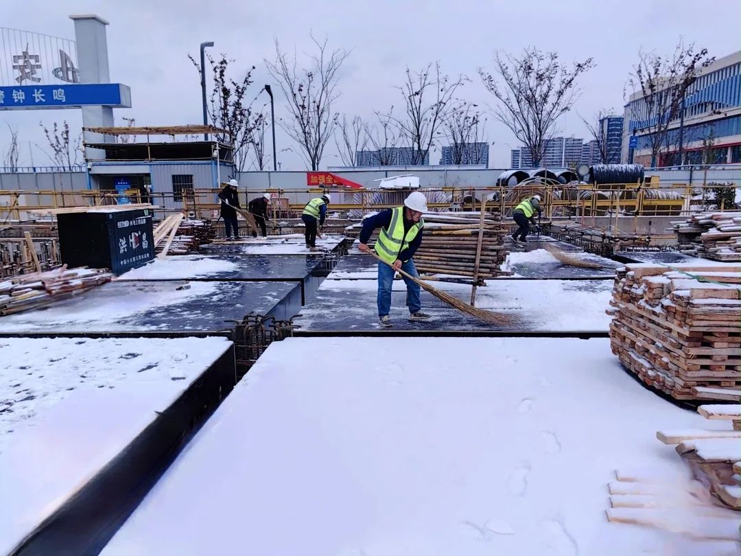 蜀山經(jīng)濟(jì)產(chǎn)業(yè)園建設(shè)項(xiàng)目現(xiàn)場(chǎng),為保障項(xiàng)目的施工進(jìn)度和現(xiàn)場(chǎng)的施工安全,全體管理人員都參與到清掃施工板面積雪的活動(dòng)中。