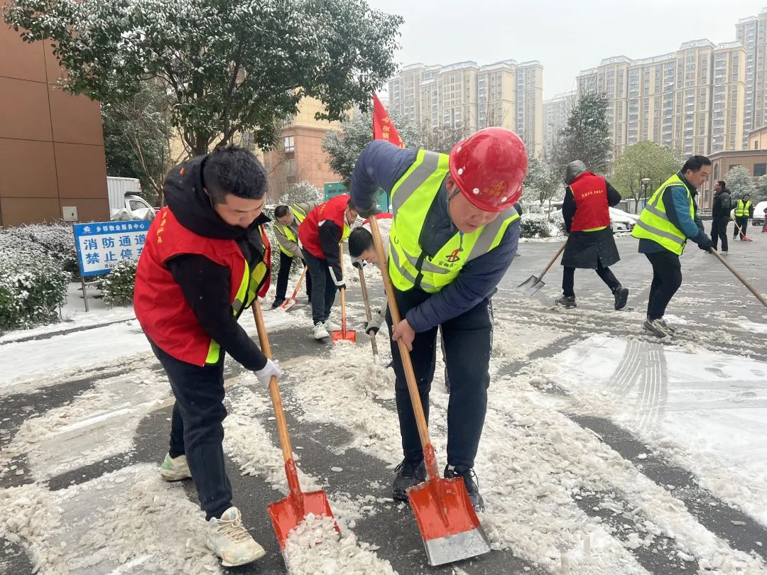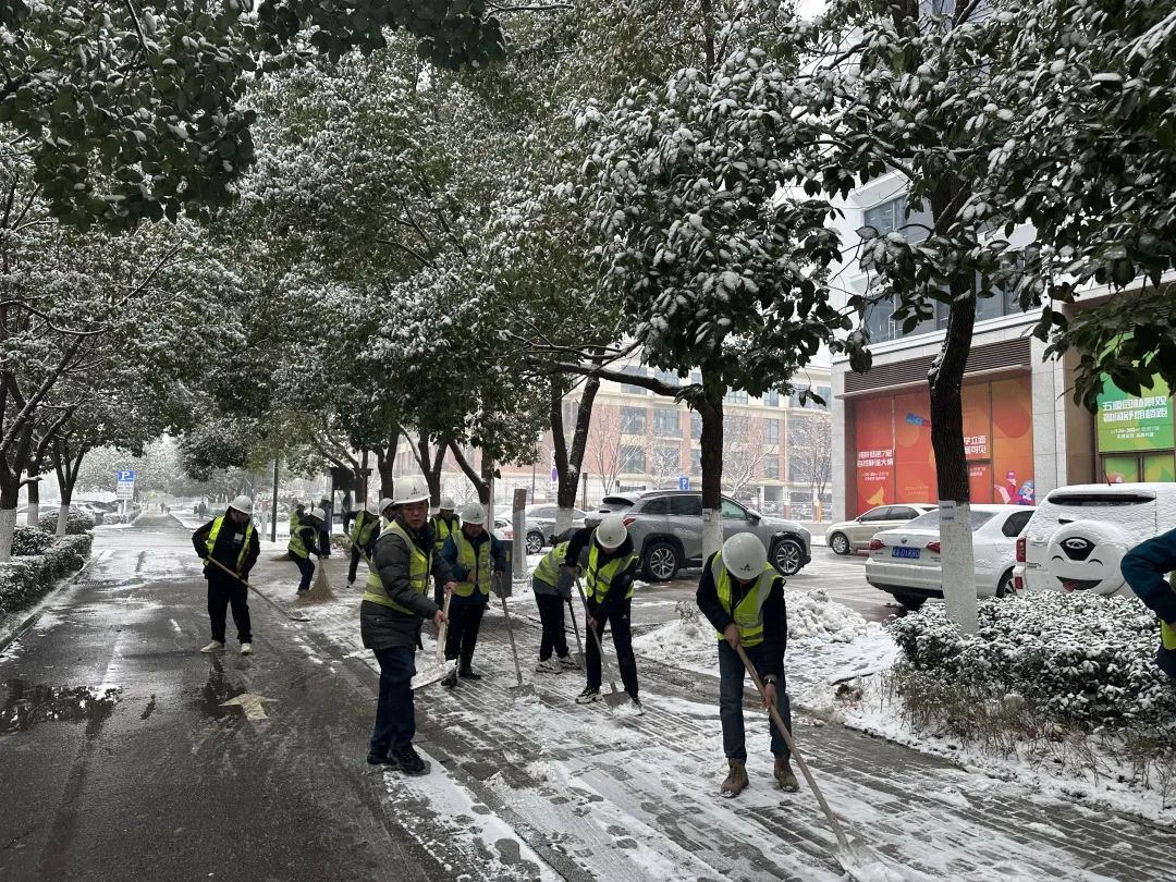 潭沖河家園項(xiàng)目組織黨員及40余名管理人員不畏嚴(yán)寒,迅速行動(dòng),清理項(xiàng)目周邊積雪,確保周邊道路通暢。