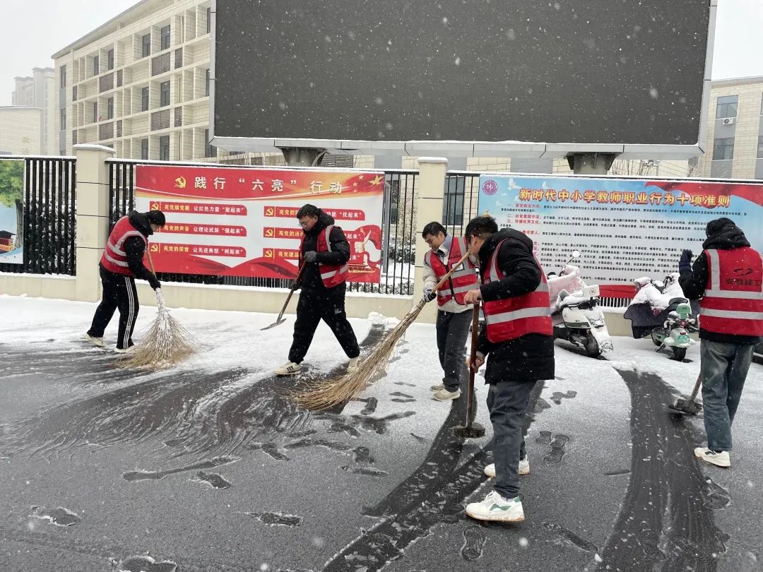 濱湖科學(xué)城BK202108地塊項(xiàng)目組織管理人員成立黨員突擊隊(duì)、青年突擊隊(duì),前往合肥師范附屬小學(xué)周邊林芝路段及佛曉路段開展“掃雪除冰保安全”活動(dòng),確保了師生安全出入校園。