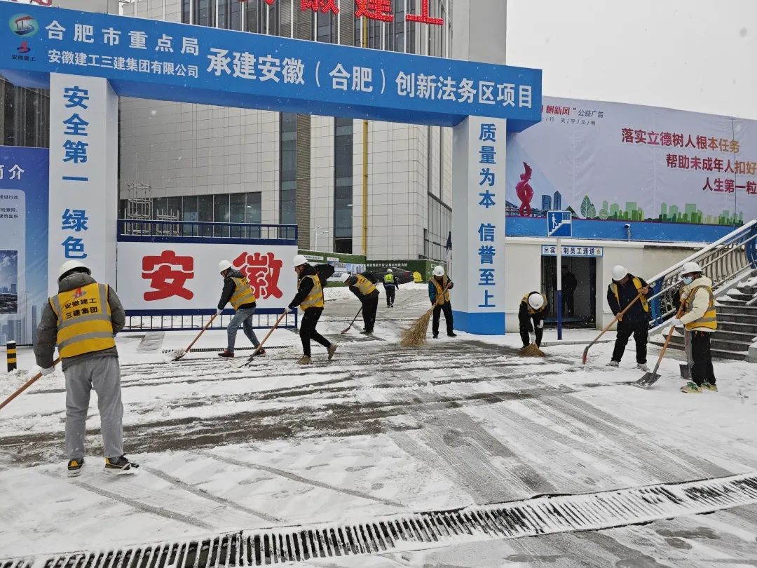 安徽(合肥)創(chuàng)新法務(wù)區(qū)項(xiàng)目組織全體管理人員清掃項(xiàng)目出入口及項(xiàng)目?jī)?nèi)部道路上的積雪,為項(xiàng)目施工安全提供堅(jiān)強(qiáng)保障。