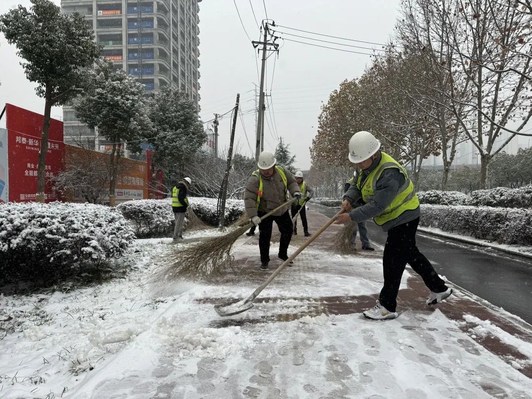 合肥瑤海YH202307地塊項(xiàng)目全體管理人員開展義務(wù)清雪,助力城市除冰掃雪清障活動(dòng),對(duì)以項(xiàng)目為中點(diǎn)向兩邊輻射1公里范圍內(nèi)的裕溪路路面積雪進(jìn)行清掃。