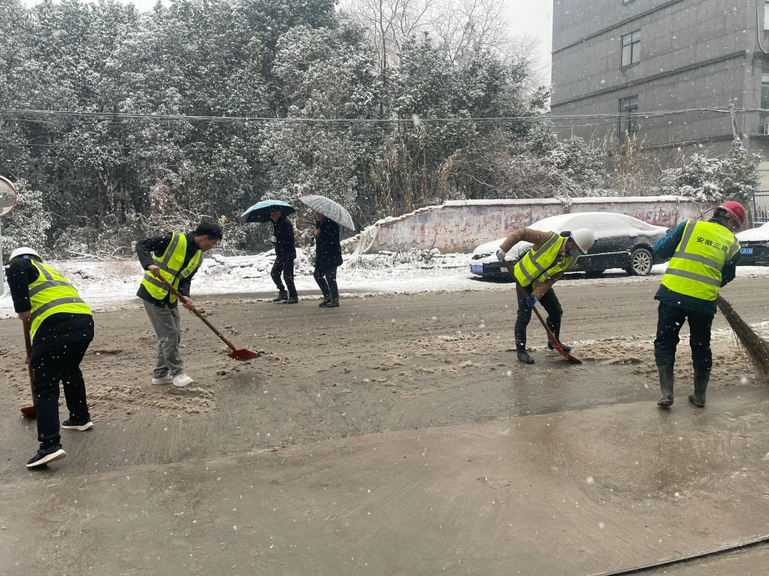 廬江同大鎮(zhèn)集鎮(zhèn)安置點(diǎn)項(xiàng)目職工組成黨員先鋒隊(duì)和青年突擊隊(duì),對(duì)項(xiàng)目周邊區(qū)域及道路積雪進(jìn)行清掃,及時(shí)消除安全隱患,為職工出行安全做出了積極貢獻(xiàn)。