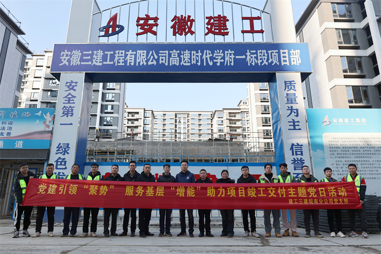為進(jìn)一步發(fā)揮基層黨建引領(lǐng)作用,推動(dòng)黨建工作與施工生產(chǎn)深度融合,1月4日下午,皖南公司黨支部組織黨員干部、入黨積極分子和團(tuán)員骨干前往蕪湖高速時(shí)代學(xué)府一標(biāo)段項(xiàng)目開展“黨建引領(lǐng)‘聚勢’,服務(wù)基層‘增能’,助力項(xiàng)目竣工交付”主題黨日活動(dòng)。