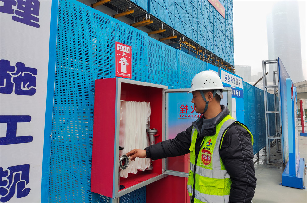 “干事業(yè)就要有釘釘子精神,抓鐵有痕、踏石留印、穩(wěn)扎穩(wěn)打,作為項目的安全員,春節(jié)期間,我要堅守陣地,保證項目安全生產(chǎn)?!卑踩珕T張偉正在進行現(xiàn)場消防安全隱患排查。