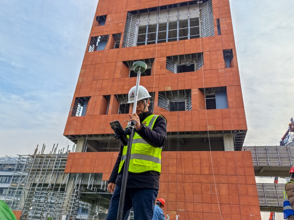 “星光不負趕路人,時代眷顧奮楫者,合肥一中淝河校區(qū)項目管理人員將全力確保項目實現(xiàn)圓滿交付!”技術(shù)總工張國田正在使用GPS復(fù)核室外景觀坐標點。
