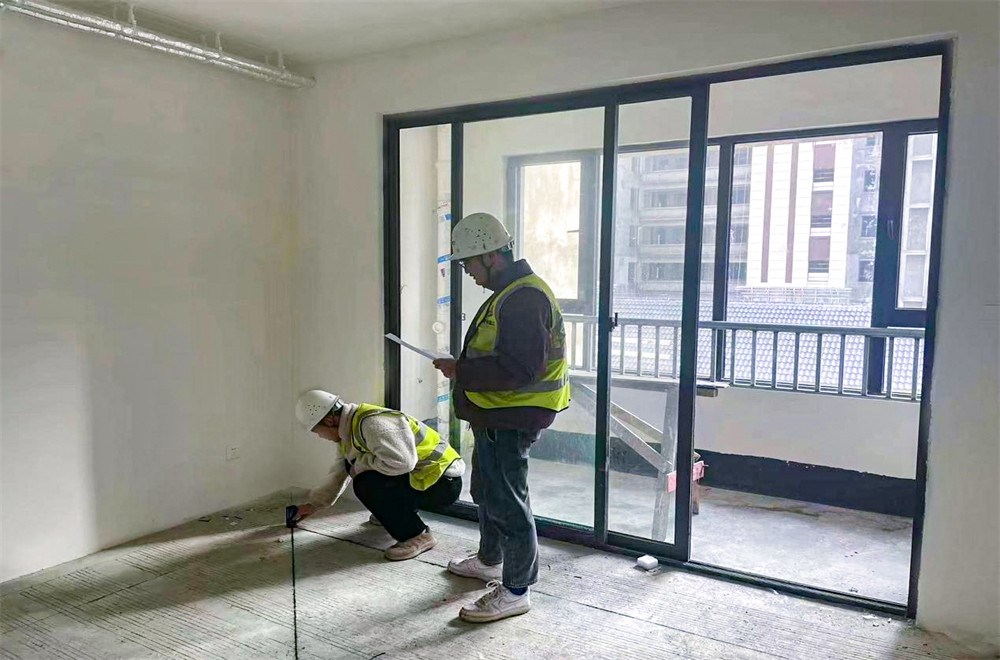 “每一次、每一處的細節(jié)檢查,都是對工程質(zhì)量的保障,我們還年輕,春節(jié)期間在項目上多學多看,站好最后一班崗?!奔夹g(shù)員程繼鏖、秦志平正在進行一戶一表技術(shù)復(fù)核檢查。