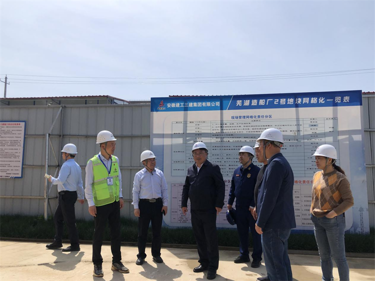 蕪湖市鏡湖區(qū)委書記郝代偉一行到蕪湖造船2號(hào)地塊項(xiàng)目進(jìn)行安全生產(chǎn)及創(chuàng)衛(wèi)工作檢查