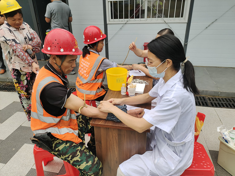 炎炎夏日,大圩金葡萄家園二期項目工地上“熱火朝天”,施工一線的建設者們堅守崗位,正緊鑼密鼓地搶抓工期,確保實現(xiàn)年底竣工驗收目標。為扎實推進“我為群眾辦實事”實踐活動,有效保障工人身體健康,15日上午,大圩金葡萄家園二期項目組織開展為全體參建工友免費健康體檢活動,為高溫下的勞動者健康護航。