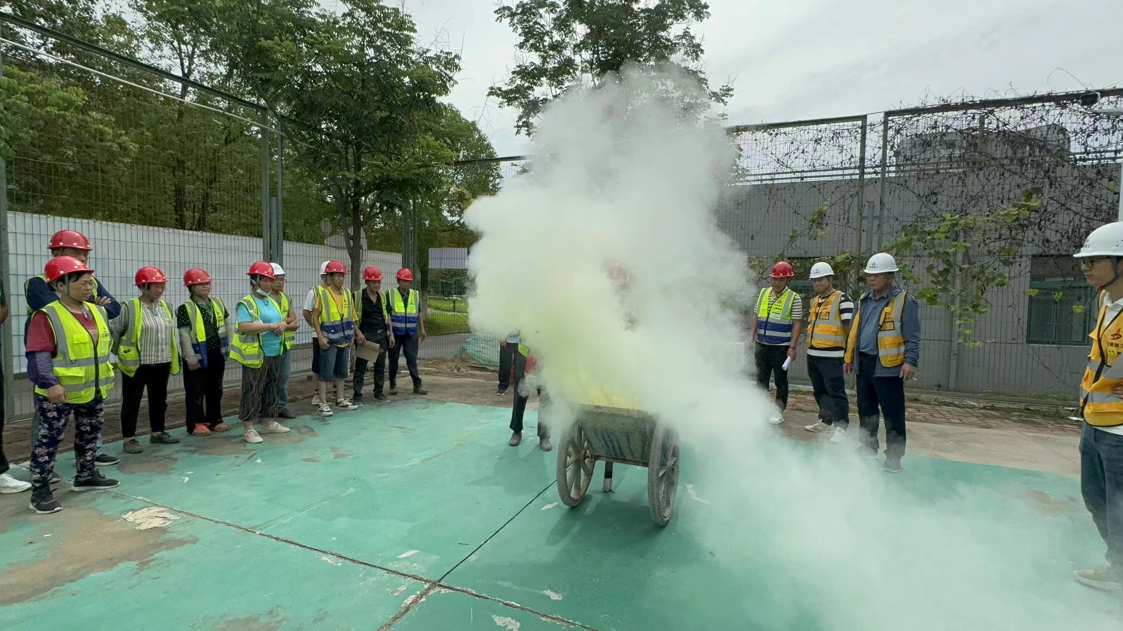 活動伊始,項目部管理人員精心籌備,為堅守在高溫一線的工人們送去了滿滿的關懷與清涼物資。一箱箱冰鎮(zhèn)的礦泉水、一盒盒解暑的藥品及一份份貼心的關懷被逐一送到工人們手中,不僅為職工們驅散了酷暑的炎熱,更讓他們感受到了公司大家庭的溫暖與支持。此外,還組織了消防演練活動,通過模擬火災場景,讓工人們親身體驗火情應對的全過程,不僅增強了他們的安全防范意識和自救互救能力,也為項目的安全施工構筑了一道堅實的“防火墻”。