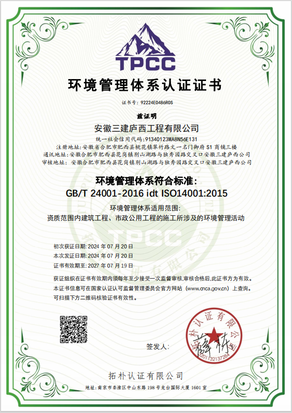 7月20日,三建廬西公司通過資質(zhì)小組的各項(xiàng)審查,獲得了質(zhì)量、環(huán)境、職業(yè)健康安全管理體系三項(xiàng)認(rèn)證證書,標(biāo)志著分公司在質(zhì)量、環(huán)境、職業(yè)健康安全管理方面達(dá)到了國(guó)家及行業(yè)的高標(biāo)準(zhǔn)要求,進(jìn)一步提升了公司的市場(chǎng)競(jìng)爭(zhēng)力和品牌信譽(yù)。