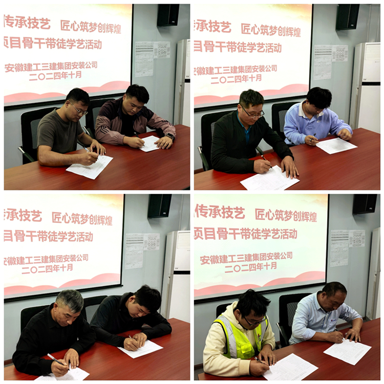 會上,安裝公司黨支部書記劉旭峰首先帶領大家深入學習貫徹黨的二十屆三中全會精神,要求黨員、管理人員要全面準確把握全會精神,提高政治站位和思想認識,充分意識到項目建設工作的重要性和緊迫性,積極發(fā)揮“兩個作用”,為項目的高質量建成貢獻力量。安裝項目部的四名青年職工圍繞項目工作、個人未來發(fā)展規(guī)劃等進行了交流。項目經理和業(yè)務骨干們結合自身豐富的從業(yè)經驗,分享如何應對項目建設中遇到的困難,紓解壓力和困惑,并對下一步工作進行了安排。分公司領導班子成員則圍繞全面深化改革推動創(chuàng)新發(fā)展、加強項目精細化管理等方面作相關要求。隨后,在與會人員的見證下,四名青年職工同他們的項目業(yè)務骨干師傅正式簽署了“師帶徒學藝書”。