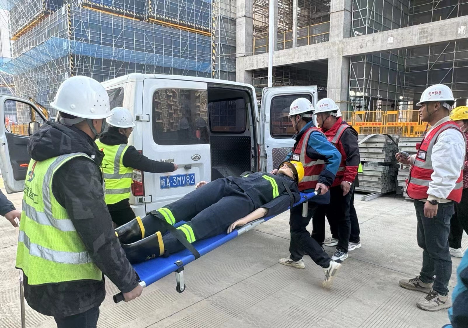 演練前,現(xiàn)場(chǎng)人員被分為警戒組、疏散組、救援組,在了解演練流程與安全事項(xiàng)后,演練正式開(kāi)始,警戒組迅速行動(dòng),分工明確,快速在事故周邊拉起警戒線,設(shè)置警示標(biāo)識(shí),禁止無(wú)關(guān)人員靠近,為救援現(xiàn)場(chǎng)營(yíng)造安全區(qū)域;同時(shí),救援組攜帶擔(dān)架、急救箱等專業(yè)設(shè)備進(jìn)入事發(fā)現(xiàn)場(chǎng),熟練檢查“傷者”傷勢(shì)并進(jìn)行急救,隨后將“傷者”平穩(wěn)送上救護(hù)車。整場(chǎng)演練,各小組分工明確、協(xié)同配合,以最短的時(shí)間高效地完成了本次演練任務(wù),充分展現(xiàn)了團(tuán)隊(duì)協(xié)作的高效性,有效檢驗(yàn)了應(yīng)急預(yù)案的可行性,提升了管理人員的應(yīng)急處置能力,更讓全體人員深刻認(rèn)識(shí)到嚴(yán)抓施工安全管理的重要性。