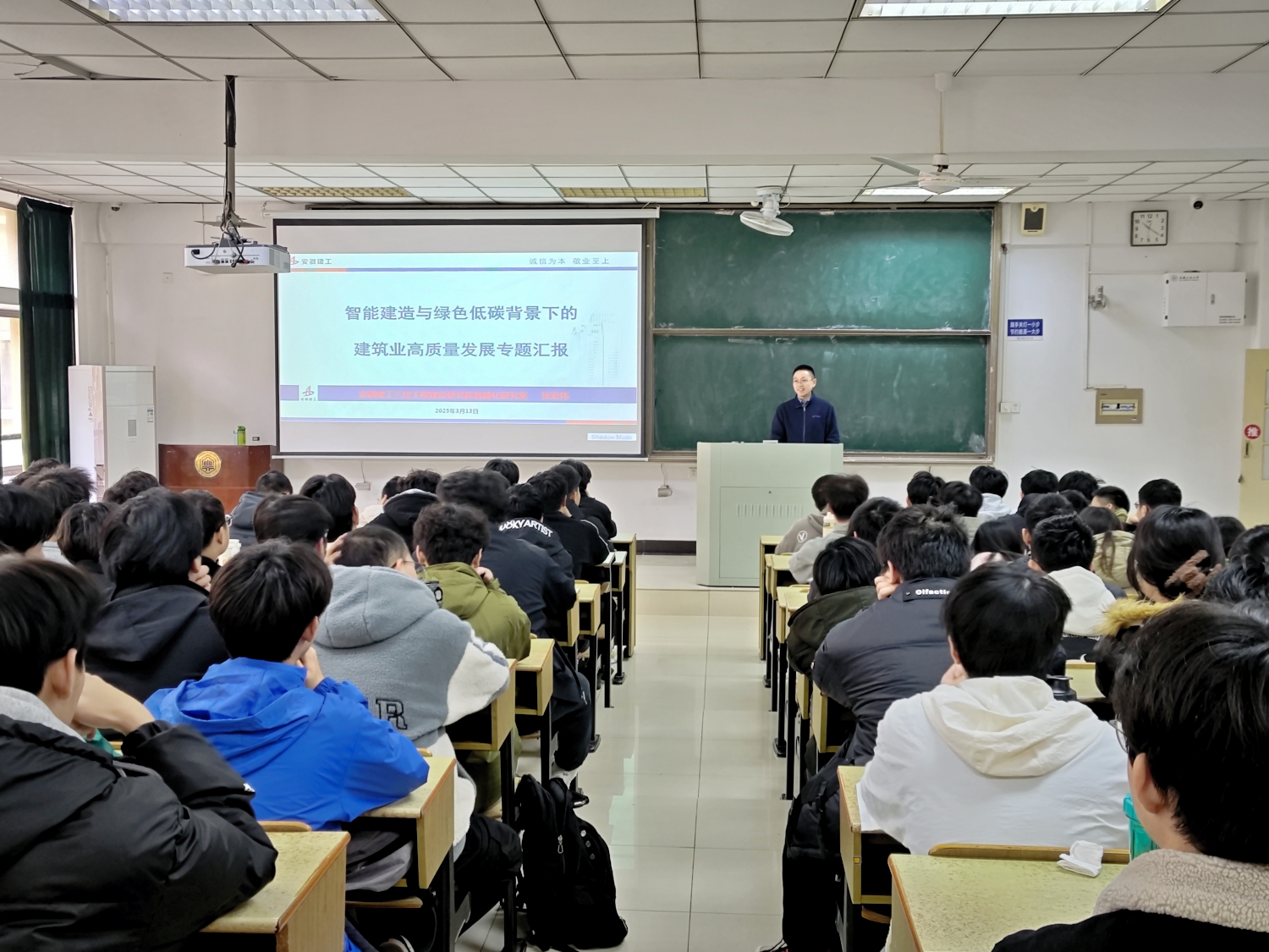 3月14日,建工三建智能建造專家團(tuán)隊(duì)走進(jìn)大學(xué)課堂,為安徽工業(yè)大學(xué)建筑學(xué)院大一學(xué)子帶來(lái)主題為“智能建造與綠色低碳背景下的建筑業(yè)高質(zhì)量發(fā)展”專題報(bào)告,展示企業(yè)在智能建造領(lǐng)域的最新研發(fā)成果和工程實(shí)踐經(jīng)驗(yàn),與廣大師生共同交流建筑業(yè)智能建造發(fā)展現(xiàn)狀、建筑業(yè)智能建造水平評(píng)價(jià)體系和建工三建智能建造案例等內(nèi)容,并就智能建造專業(yè)學(xué)生培養(yǎng)方向、智能建造專業(yè)課程設(shè)置、企業(yè)智能建造專業(yè)人才需求等做了探討。