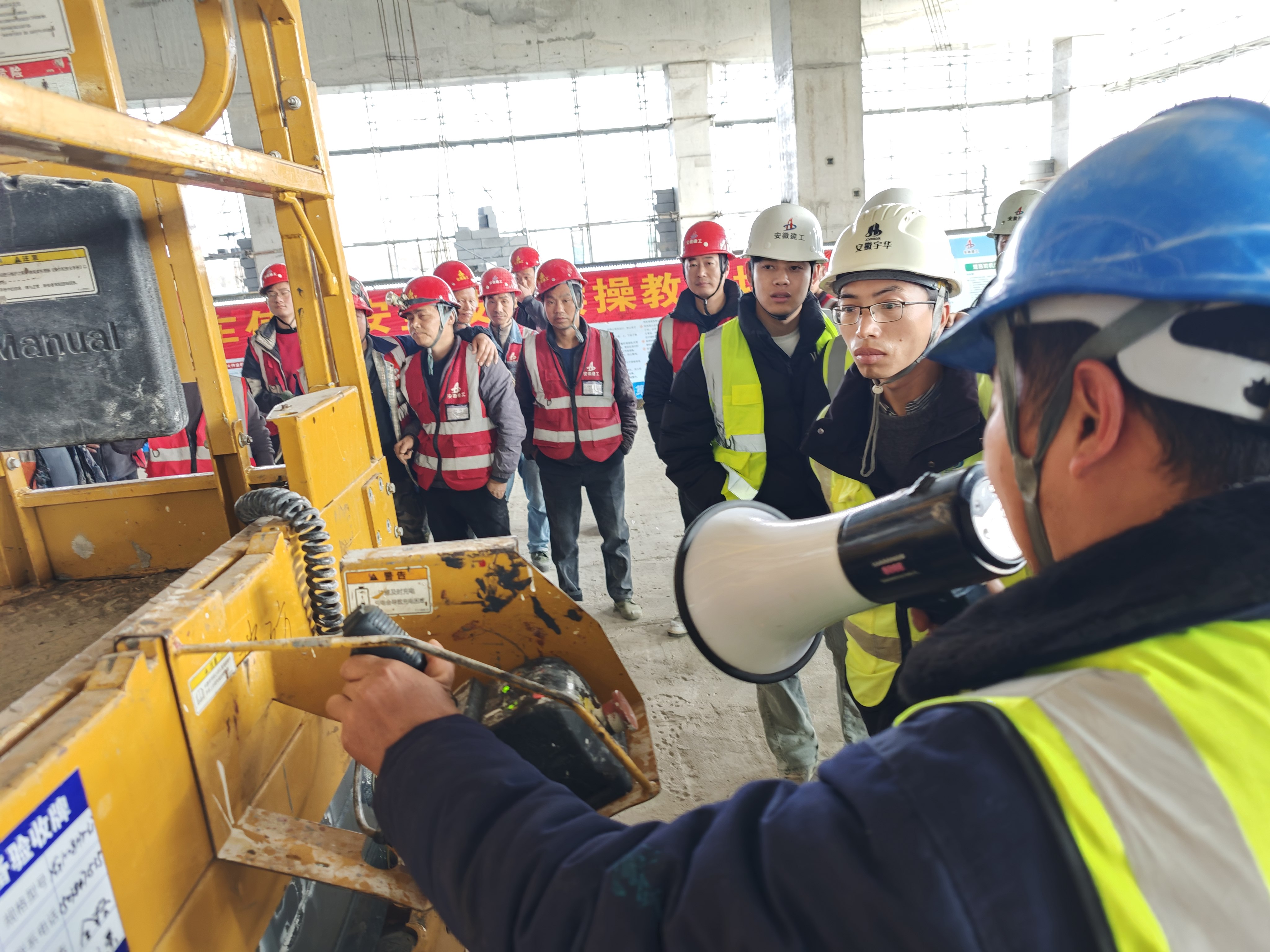 分公司黨支部充分發(fā)揮“把方向、管大局、保落實”作用,以“黨員技術(shù)攻堅小組”為載體,精準對接項目安全需求。通過黨支部協(xié)調(diào)資源,特別邀請弋江區(qū)新型產(chǎn)業(yè)園項目剪叉式高空作業(yè)車供貨單位技術(shù)負責人開展“黨建+技術(shù)”雙師教學。參訓人員圍繞設備結(jié)構(gòu)裝置、操作流程等核心要素展開深度學習,重點突出“黨員安全責任區(qū)”設備監(jiān)管要求,將“持證上崗、規(guī)范操作”的剛性規(guī)定轉(zhuǎn)化為黨員帶頭踐行的行動準則?,F(xiàn)場設立黨員安全示范操作臺,通過“黨員帶群眾”“師帶徒”的紅色傳承模式,確保技術(shù)規(guī)范入腦入心。