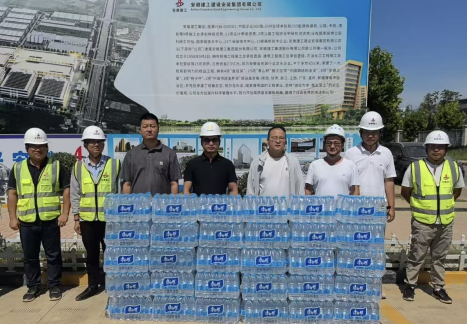 7月10日上午,鳳陽(yáng)縣重點(diǎn)工程建設(shè)管理服務(wù)中心質(zhì)量安全股主任姜銳一行到公司鳳陽(yáng)縣小崗村農(nóng)產(chǎn)品加工產(chǎn)業(yè)園三期建設(shè)北區(qū)項(xiàng)目調(diào)研開工建設(shè)情況,并為高溫堅(jiān)守崗位的一線建設(shè)者“送清涼”。