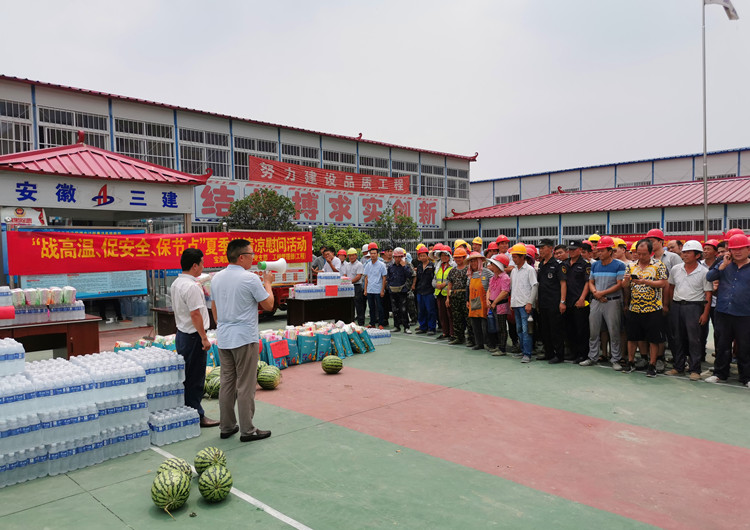 入夏以來,持續(xù)高溫,七公司寶灣三期項(xiàng)目的一線工人,戰(zhàn)高溫,斗酷暑,始終堅(jiān)守在施工生產(chǎn)一線。為確保項(xiàng)目工人平安、清涼度過酷暑盛夏,7月11日,合肥寶灣國(guó)際物流中心有限公司工程物流黨支部、工程管理部聯(lián)同項(xiàng)目部開展“戰(zhàn)高溫、促安全、保節(jié)點(diǎn)”夏季送清涼慰問一線農(nóng)民工活動(dòng)。