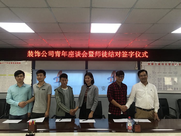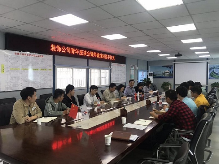 為了調動裝飾公司青年職工的工作熱情和積極性,切實幫助青年職工解決工作和生活中的實際問題,10月12日下午,裝飾公司團支部在創(chuàng)新館項目部會議室召開以“溝通交流,相互學習,共同進步”為主題的青年職工交流會,并開展“師徒結對”活動。公司經理萬和生、黨支部書記高莉、副經理王皖、孫一甲及所有青年員工參加了交流會。