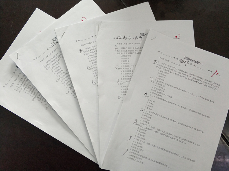 項目黨支部通過測試進一步鞏固了學習內容。值得一提的,黨建教育測試是寶灣三期住宅項目黨支部自2018年7月至今每月固定開展一次的活動,旨在加強項目黨員的黨性修養(yǎng),進一步了解掌握黨的理論和黨建業(yè)務知識,提升黨務工作水平,更好的指導工作實踐,服務項目生產工作。