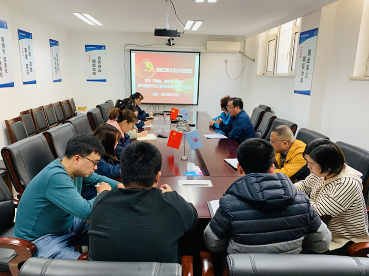為深入學(xué)習(xí)貫徹習(xí)近平總書(shū)記關(guān)于力戒形式主義、官僚主義的重要論述和指示批示,堅(jiān)持“三嚴(yán)三實(shí)”,大連公司黨支部3月19日下午3:30在會(huì)議室召開(kāi)專(zhuān)題學(xué)習(xí)會(huì)議,傳達(dá)學(xué)習(xí)集團(tuán)公司黨委、安徽三建公司黨委有關(guān)開(kāi)展“嚴(yán)規(guī)矩、強(qiáng)監(jiān)督、轉(zhuǎn)作風(fēng)”集中整治形式主義官僚主義專(zhuān)項(xiàng)行動(dòng)的文件精神。支部黨員和入黨積極分子共15人參加了專(zhuān)題學(xué)習(xí)會(huì)議。