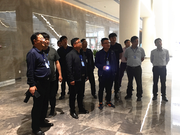 觀摩中,孫俊中對所有項目人員表示親切的慰問,在現(xiàn)場聽取了項目負責人王皖對安徽創(chuàng)新館整體建設(shè)情況介紹。隨后孫俊中一行參觀了二號館、三號館。裝飾公司項目經(jīng)理劉維向觀摩團介紹了二號館室內(nèi)環(huán)氧磨石工藝、PVC石塑地板鋪貼技術(shù)以及三號館全球路演中心超大型藝術(shù)造型鋼板安裝技術(shù)等等。館內(nèi)光可鑒人的環(huán)氧磨石地面、輕質(zhì)飄逸的穿孔鋁板、氣勢宏偉的路演中心給孫俊中一行留下深刻印象。