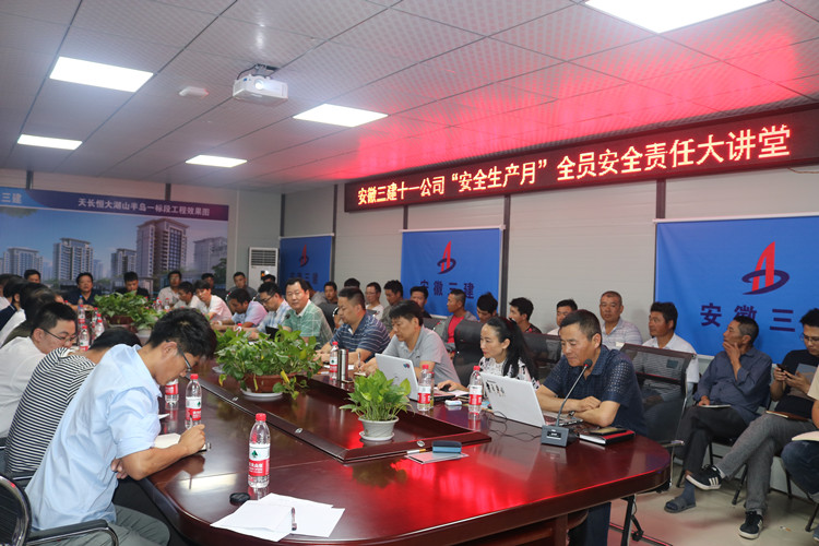 為積極響應(yīng)建工集團(tuán)、三建公司關(guān)于安全生產(chǎn)工作的號召,強(qiáng)化安全意識,提升安全素質(zhì)。2019年6月16日晚7點(diǎn),十一公司組織領(lǐng)導(dǎo)班子成員、項(xiàng)目經(jīng)理、項(xiàng)目管理人員共計(jì)40余人在天長恒大項(xiàng)目會議室開展“安全責(zé)任大講堂”活動。