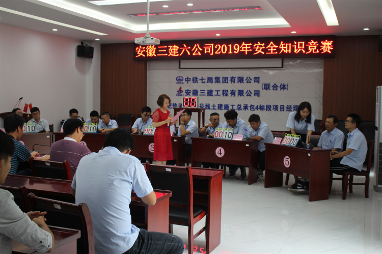 為深入開(kāi)展“防風(fēng)險(xiǎn)、除隱患、遏事故”為主題的第十八個(gè)“安全生產(chǎn)月”活動(dòng),提高分公司及項(xiàng)目管理人員安全生產(chǎn)意識(shí),6月25日下午,六公司在軌道交通項(xiàng)目部舉辦了第二屆安全知識(shí)競(jìng)賽活動(dòng)。分公司所屬6個(gè)項(xiàng)目派出7組共計(jì)21人進(jìn)行了比賽。公司安全生產(chǎn)管理部劉婕到場(chǎng)指導(dǎo),另有30人觀看了競(jìng)賽。